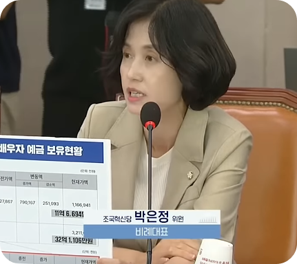 여당에서는 내로남불이라고 비판했는데요. 이유는 박은정 의원 배우자가 검사를 그만두고 변호사를 개업한 지 1년 만에 재산이 41억 원이 늘었기 때문입니다.