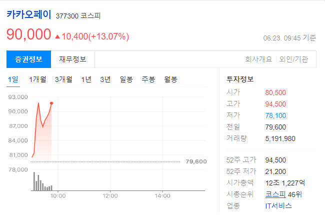 📈 주가도 들썩… 카카오페이 한 달 새 162% 급등